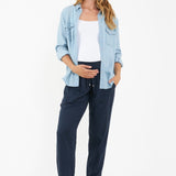 The Bec Denim Chambray Maternity Shirt by Ripe Maternity has the look of a classic denim shirt but with the soft feel of Tencel. This shirt is so versatile, you'll be wearing it on repeat through pregnancy and beyond! Featuring front patch pockets and a nursing-friendly button-through design. The relaxed fit and classic silhouette look great styled with jeans, leggings or over dresses.