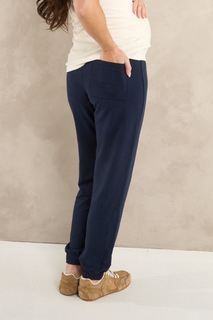 Made from soft, breathable Lyocell fabric, the Everyday Sweatpant sits comfortably below the bump with an elastic waist and ankle cuffs for a secure fit without pressure. The relaxed leg and single back pocket add casual style, while the low-rise design sits comfortably under growing bellies for all-day ease.