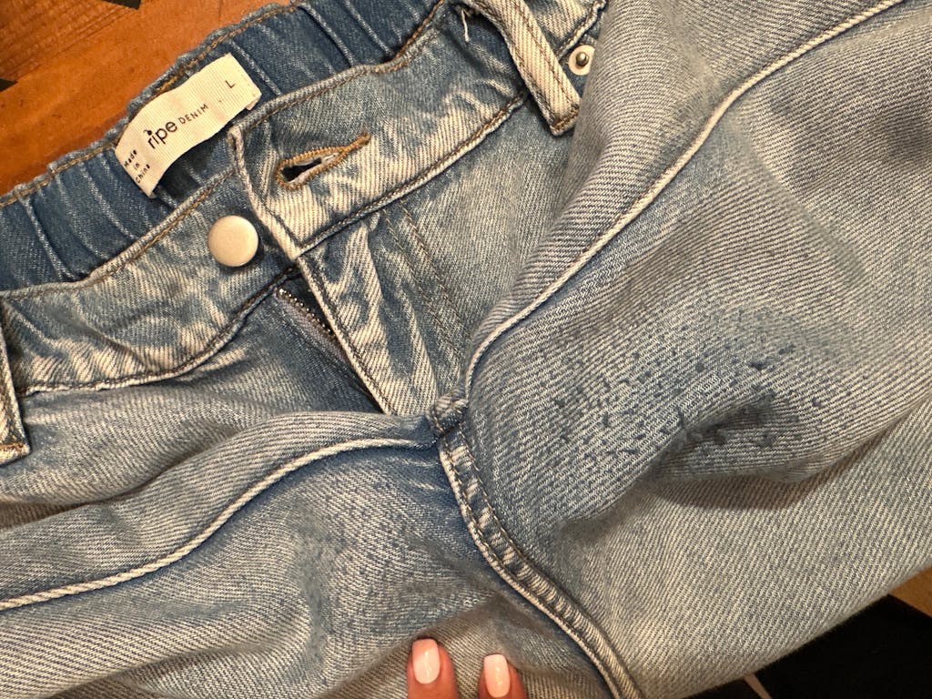 I’m 23 weeks so my normal jeans no longer fit and I’m already sick of wearing leggings. I tried several pairs of maternity jeans from various brands, and so far these are my favourite pair. At first they were exactly what I wanted— they feel like a quality cotton denim and they look like real jeans. They have a button and fly instead of being pull-on like most maternity jeans, and they don’t have hideous elastics or a belly band. The waist sits comfortably under my belly. I was so so so happy when I first received them. I wore a size 30 pre-pregnancy and ordered the L— they fit great. I wore them once out of the house for a few hours to go to dinner,and by the time I got home, they had pilled in the crotch. I’ll keep them because they are comfortable, the best fit, and cute— but I am not sure that the fabric will hold up for the next 17ish weeks of regular wear. I wish more maternity jeans would be made with an elastic waist like this with a real button and fly instead of pull-on or with a belly band. I want to feel like I’m wearing real jeans!