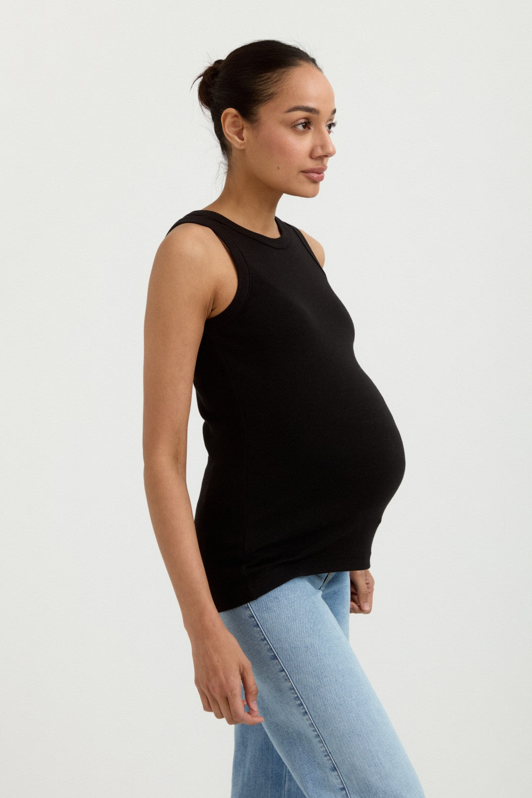 This classic tank is a must for every stage of pregnancy. With an elevated silhouette, crafted in our super soft baby rib fabric, with impressive stretch and retention. Perfect on its own or as a layering piece.