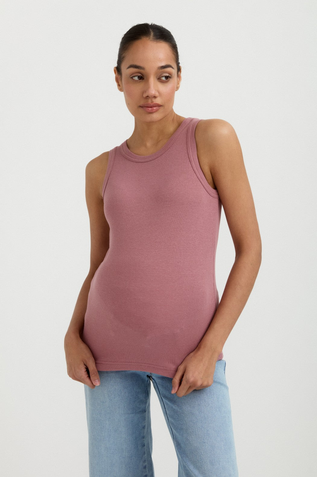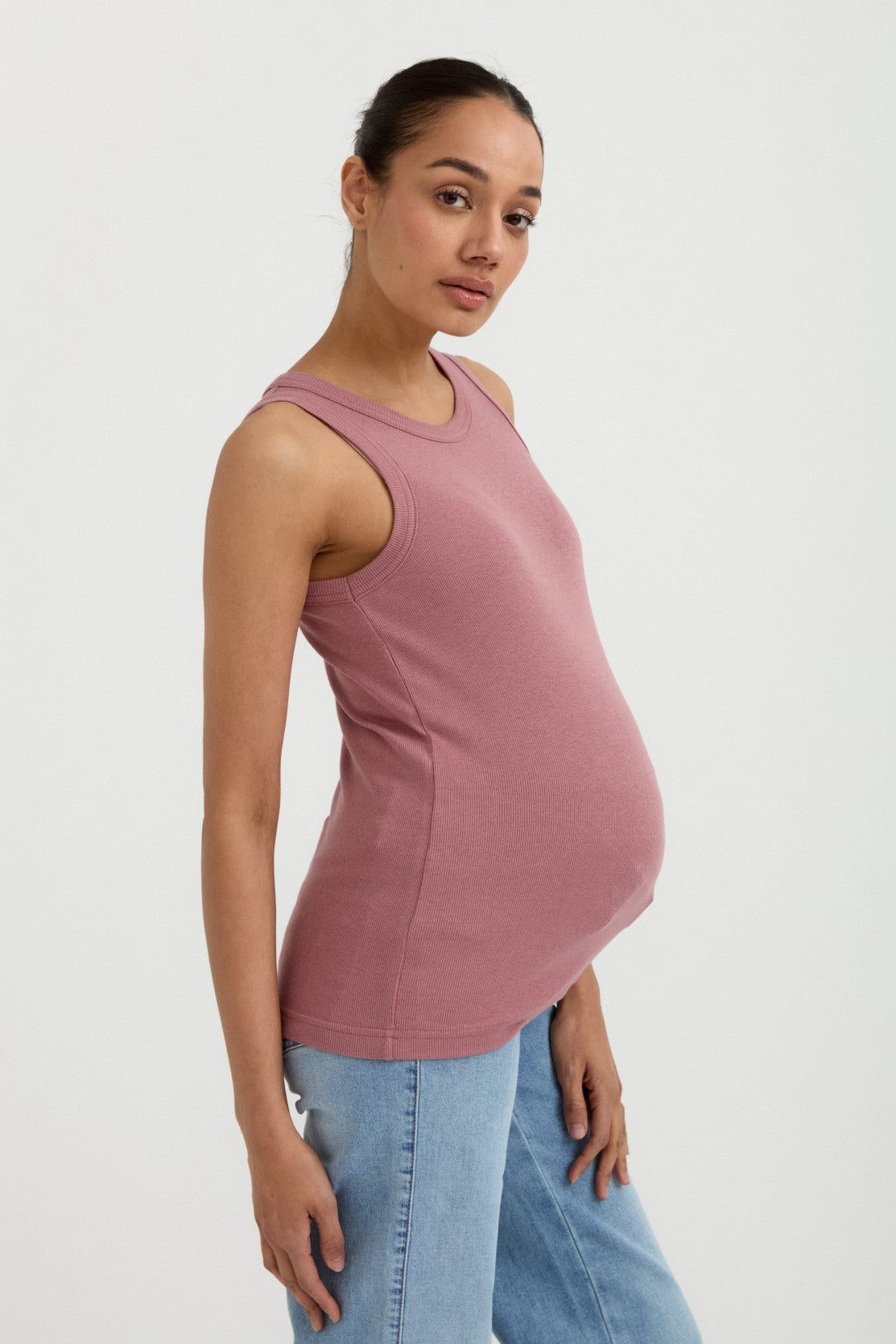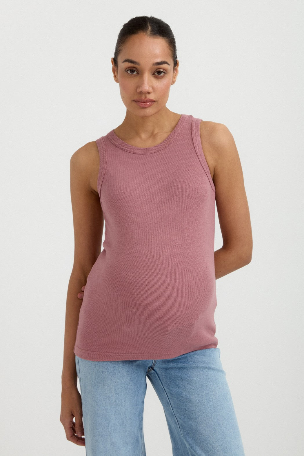This classic tank is a must for every stage of pregnancy. With an elevated silhouette, crafted in our super soft baby rib fabric, with impressive stretch and retention. Perfect on its own or as a layering piece.