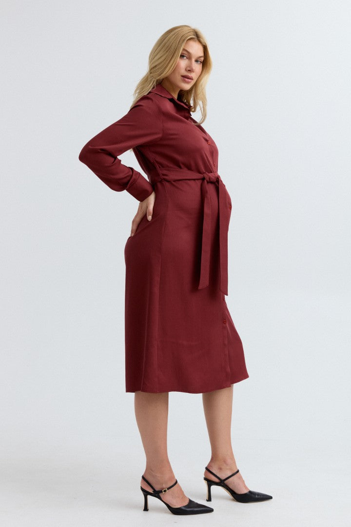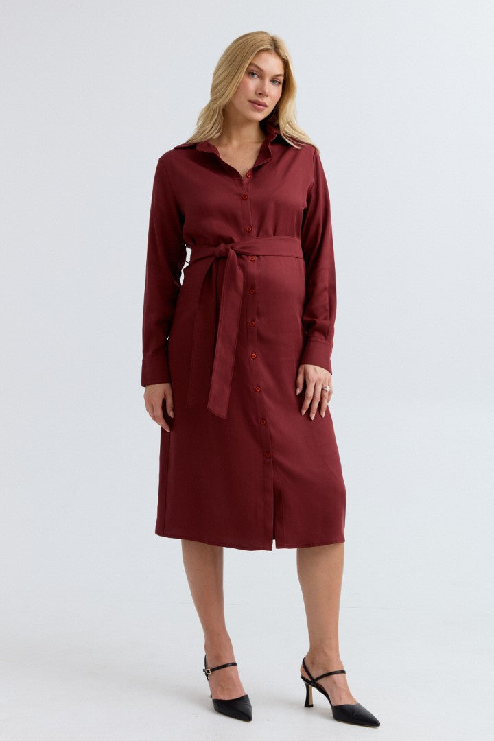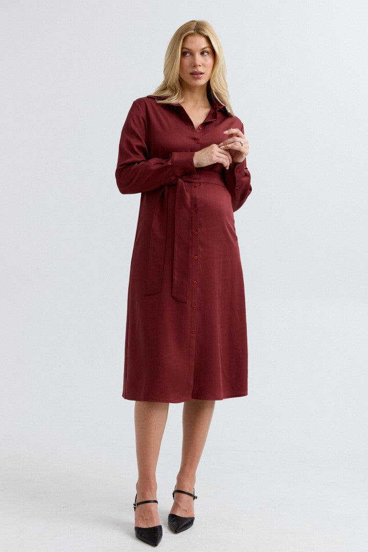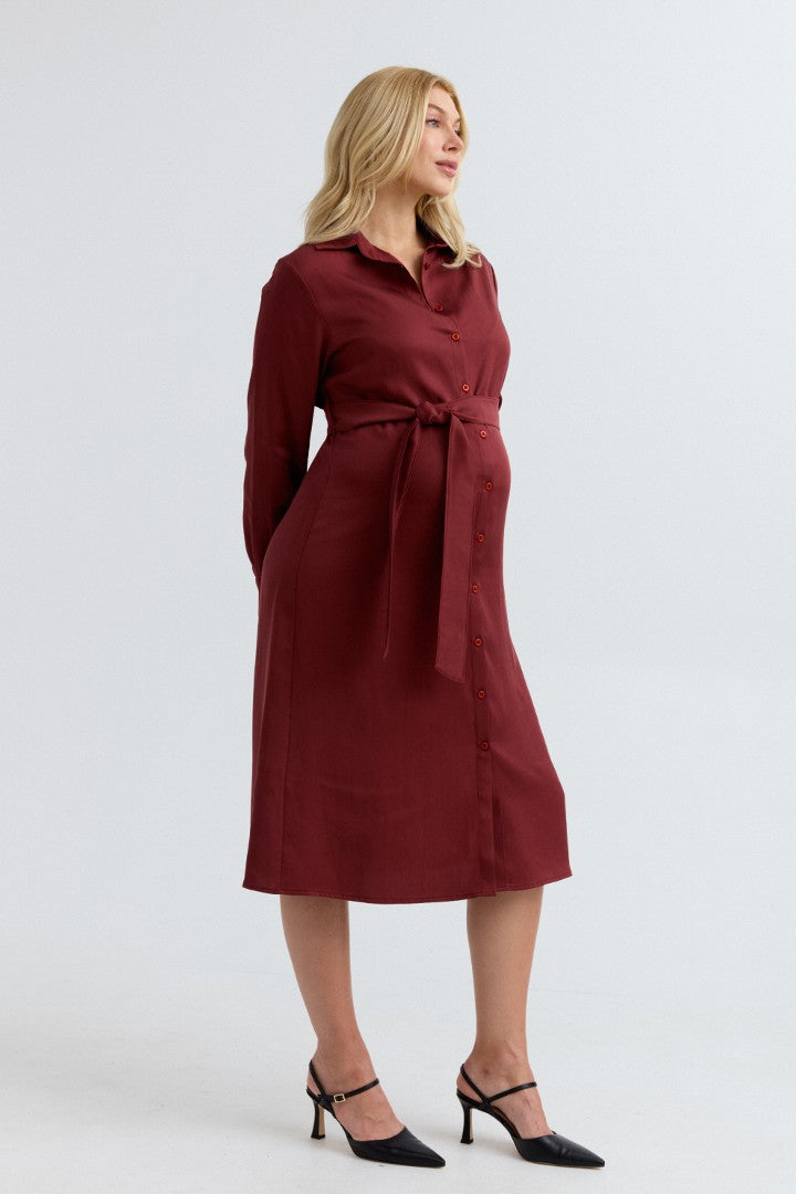 Comfortable yet refined, our Grace Shirt Dress is the perfect option for transitioning from day to night. This timeless design boasts a crisp collar neckline and a button-down front for convenient nursing access. It exudes classic style with relaxed sleeves and pleated shirt cuffs, while the included belt beautifully accentuates your silhouette.