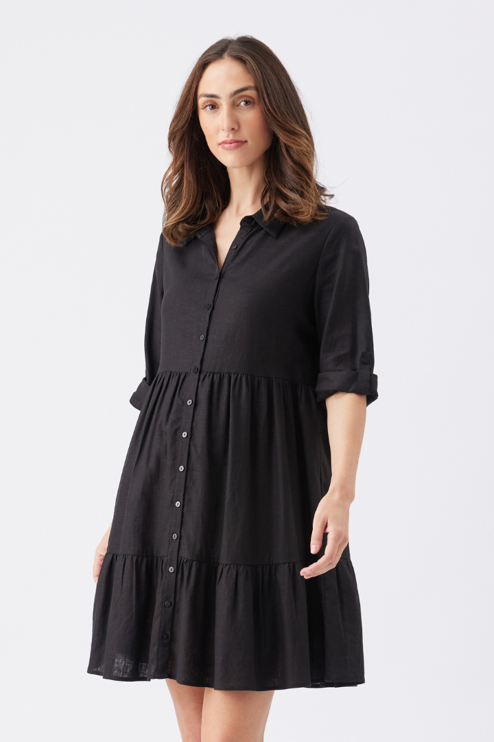 On everyone’s wish list is the Adel Linen Dress. Made from a lightweight linen blend making it breezy and breathable, this is a modern (maternity and nursing friendly) take on the classic shirt dress. Finished with cuffed elbow length sleeves, an empire seam, and double tiered skirt.