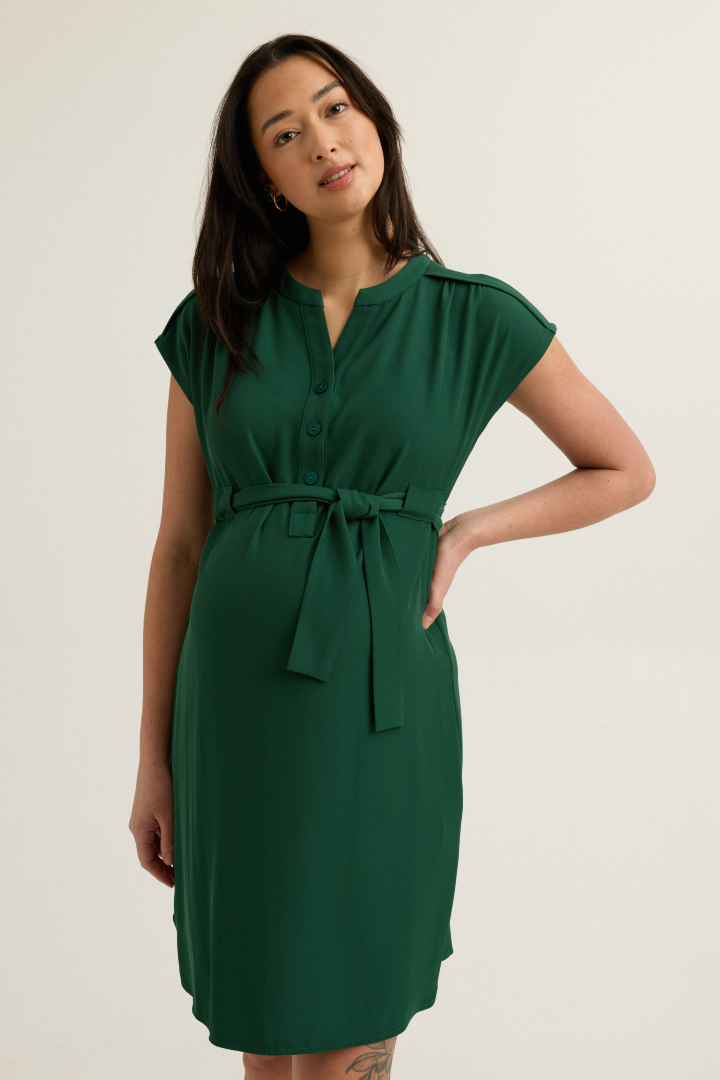 Belted Woven Maternity Work Dress (Emerald) | CARRY