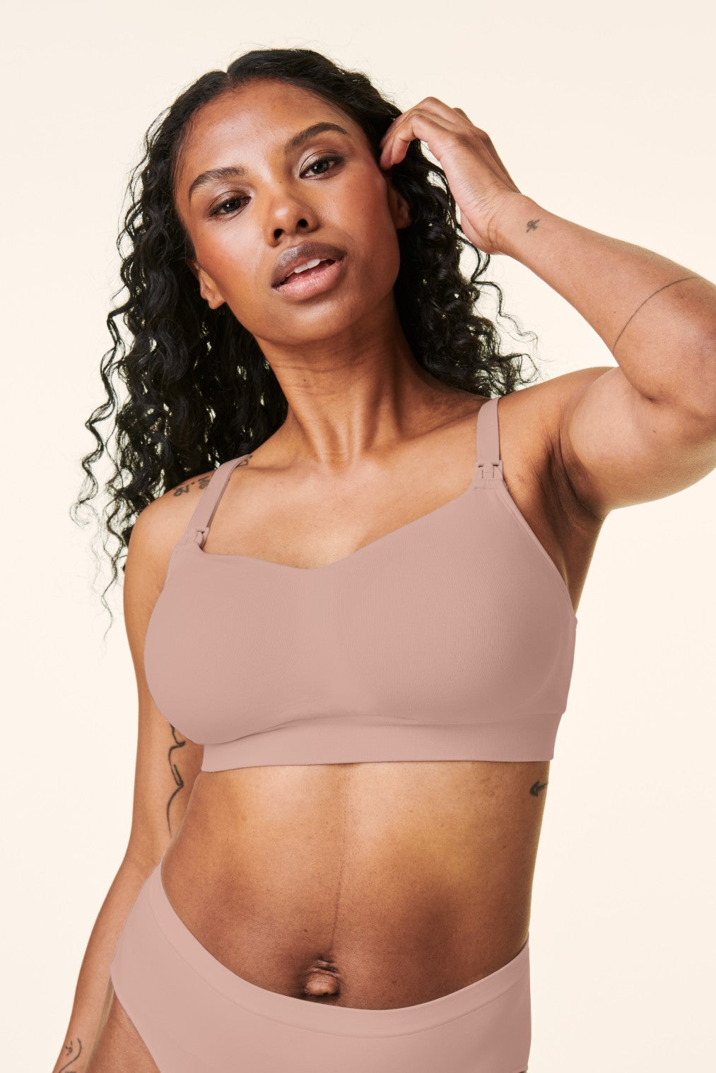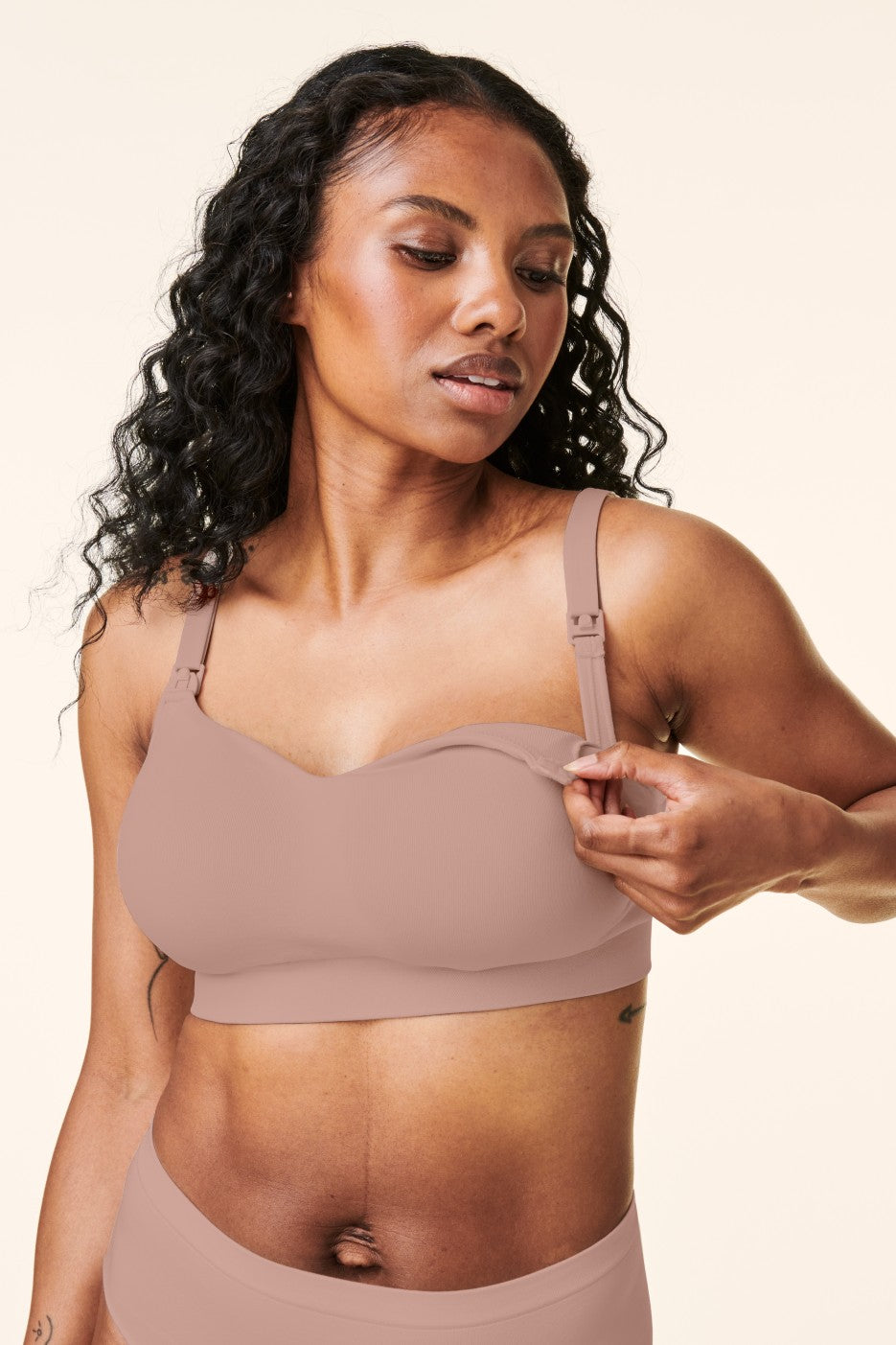 - Bra cups that fully drop away for maximum skin-to-skin contact