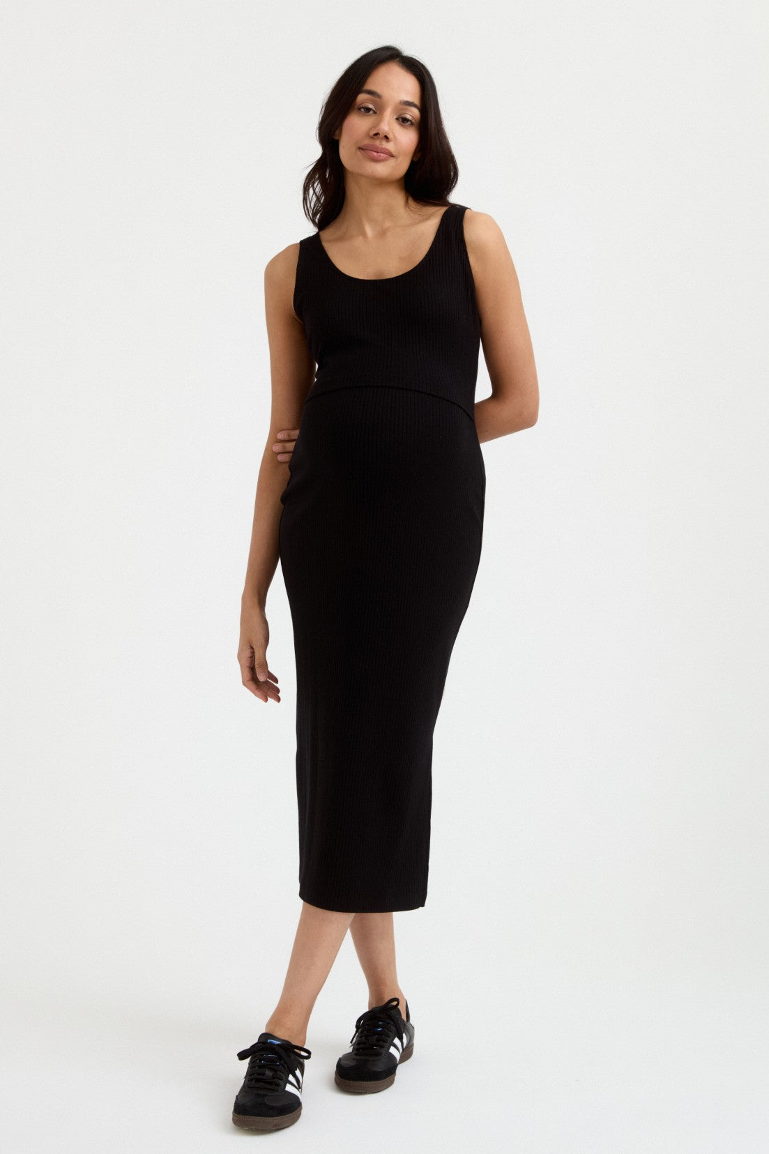 Designed to change with you, our Maeve Rib Nursing Tank Dress is made from a mid-weight rib knit with amazing stretch that retains its shape. The midi-length and side slit elevate this piece. This dress is a go-to piece you’ll wear season after season.