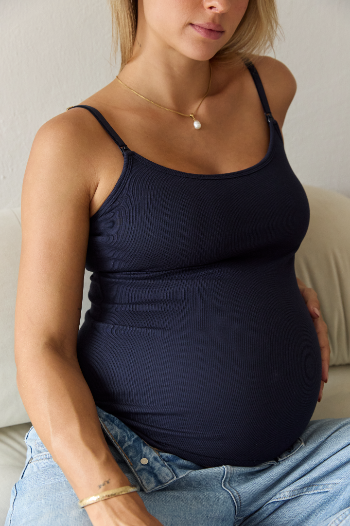 Your new daily staple: a ribbed nursing tank with a built-in bra, made of the world's finest cotton blend with tons of stretch to fit your changing body perfectly.