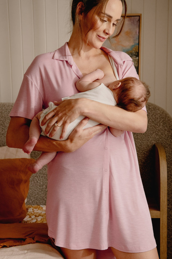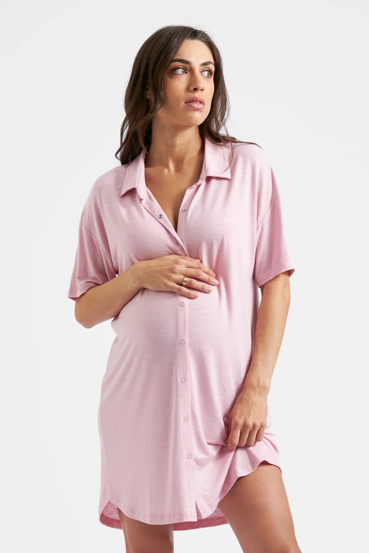 Looking for the comfiest pyjamas ever? The Dreamy Night Shirt is the perfect choice. Made from a luxuriously soft knit jersey, this nightie is easy to wear to bed or for lounging with its relaxed fit and functional front snaps that make it perfect for nursing. The short sleeves add to the shirt’s breezy feel. So comfy and lightweight, wear this piece all the way into summer and look super cute while doing it.