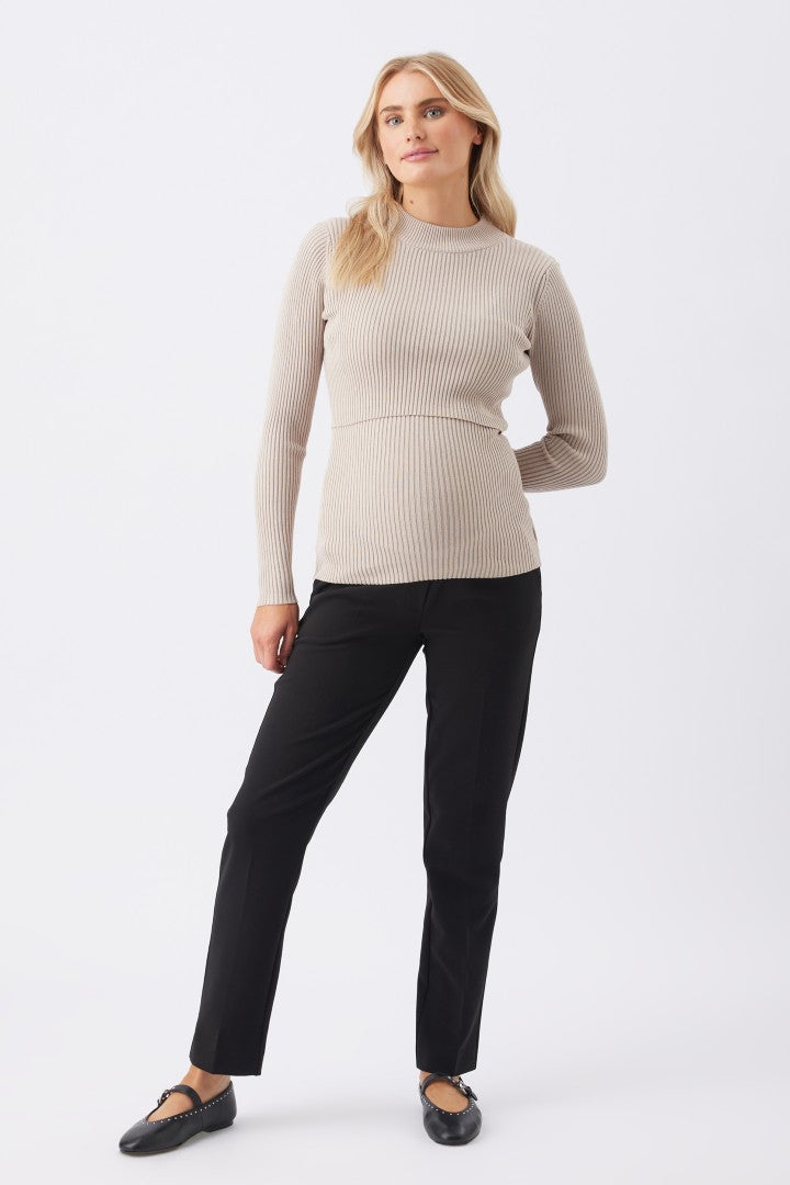 Slip into the slim fit of the Lift Up Nursing Knit. Crafted from a soft blend of viscose and nylon, this textured rib knit features an understated round neckline, long sleeves, and an easy and discreet lift-up panel for nursing. This cozy style offers a lighter alternative to your heavy winter sweaters for warmth without the weight. Style yours with denim, or with our A-Line Knit Skirt for a classic and timeless winter look.