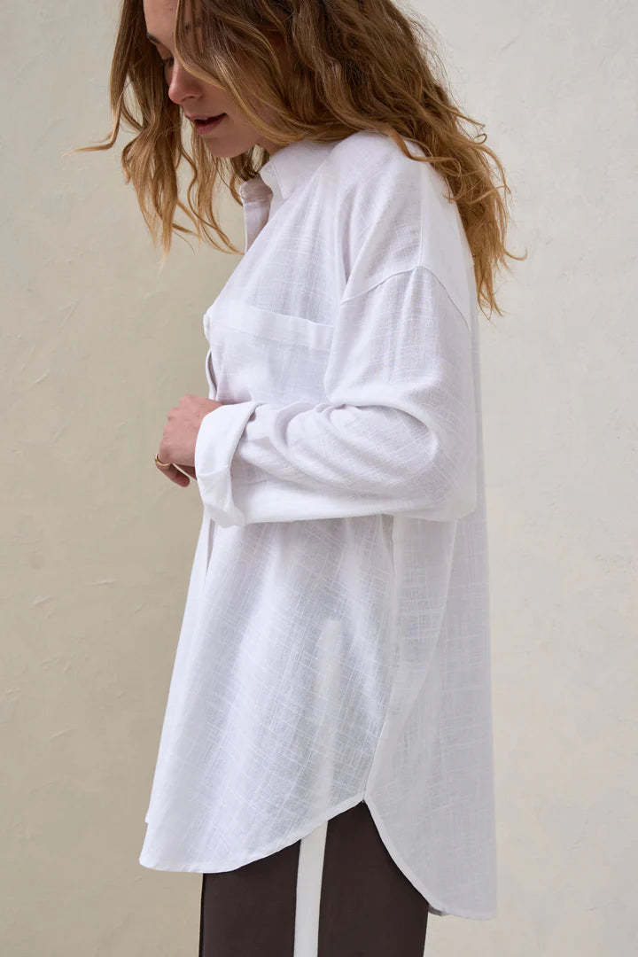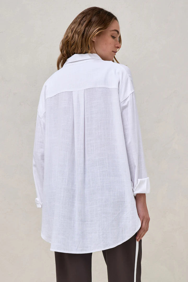 Made in a lived-in soft linen blend, this oversized shirt drapes over bump like a dream and looks just as amazing post-bump too. It's the ultimate +1 to every outfit.