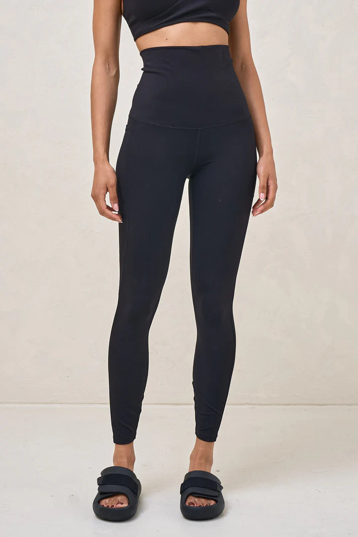 A maternity must-have. This wear-everywhere maternity legging redefines comfort with our buttery soft, second skin Bodybase fabric that stretches with your growing belly, without losing its shape. Featuring technical Bodybase fabric with zero sheerness, an over-bump waist band and pockets to hold all your essentials.